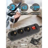 Удлинитель Intro с заземлением, выключателем, 3 розетками и проводом 3х0,75мм²: сравнение цен, характеристики, фото, актуальное наличие и цены.
