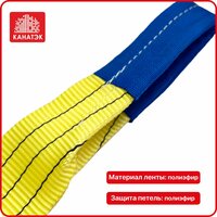 Конструктивно - петлевой текстильный строп, петли которого усилены защитной тканью. Полиэфирная лента прошита высокопрочной полиэфирной нитью и скреплена 150 мм замком.
