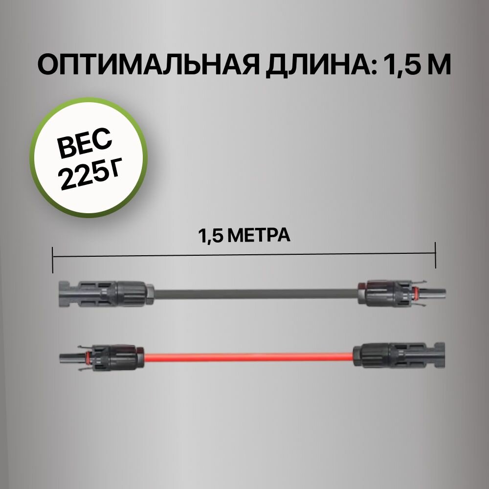 Удлинитель MC4 для солнечных панелей 4 мм (1,5 метра) (комплект 2 шт), красный и черный: сравнение цен, характеристики, фото, актуальное наличие и цены.