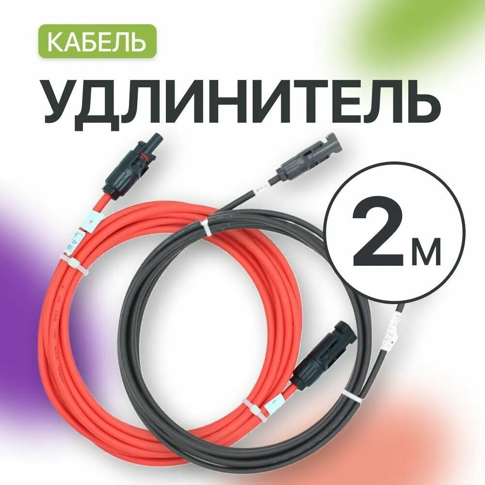 Удлинитель MC4 для солнечных панелей 4 мм (2 метра) (комплект 2 шт), красный и черный: сравнение цен, характеристики, фото, актуальное наличие и цены.