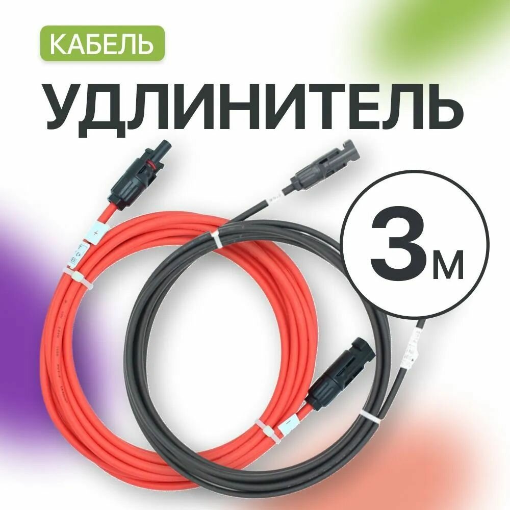Удлинитель MC4 для солнечных панелей 4 мм (3 метра) (комплект 2 шт), красный и черный: сравнение цен, характеристики, фото, актуальное наличие и цены.