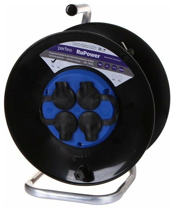 Удлинитель на катушке без заземления Perfeo RuPower 4 Sockets 20m Black PF_C3353: сравнение цен, характеристики, фото, актуальное наличие и цены.