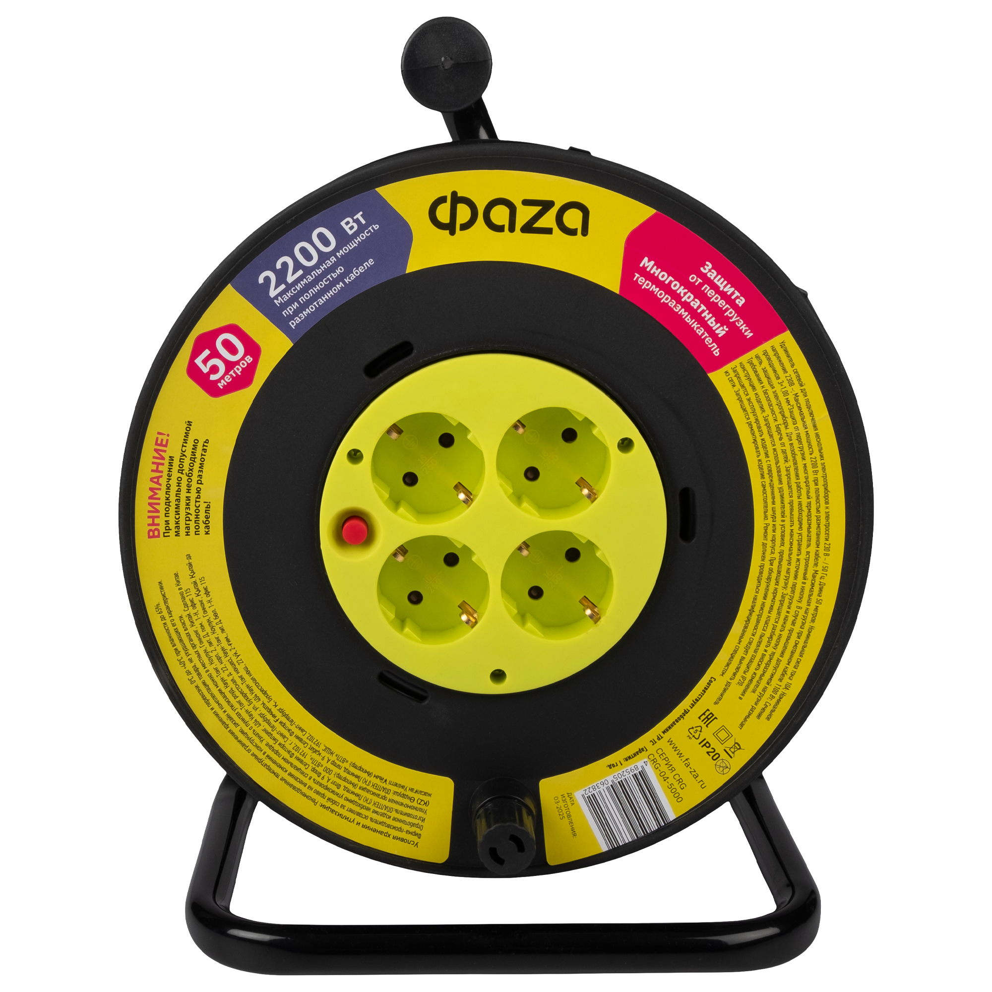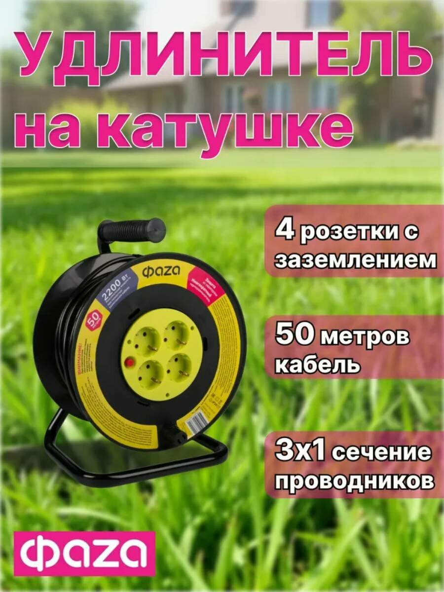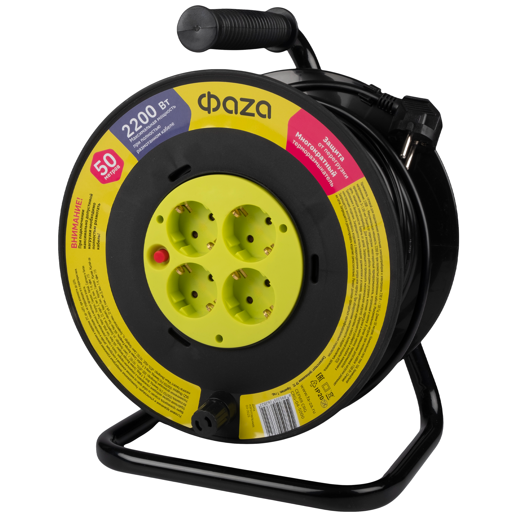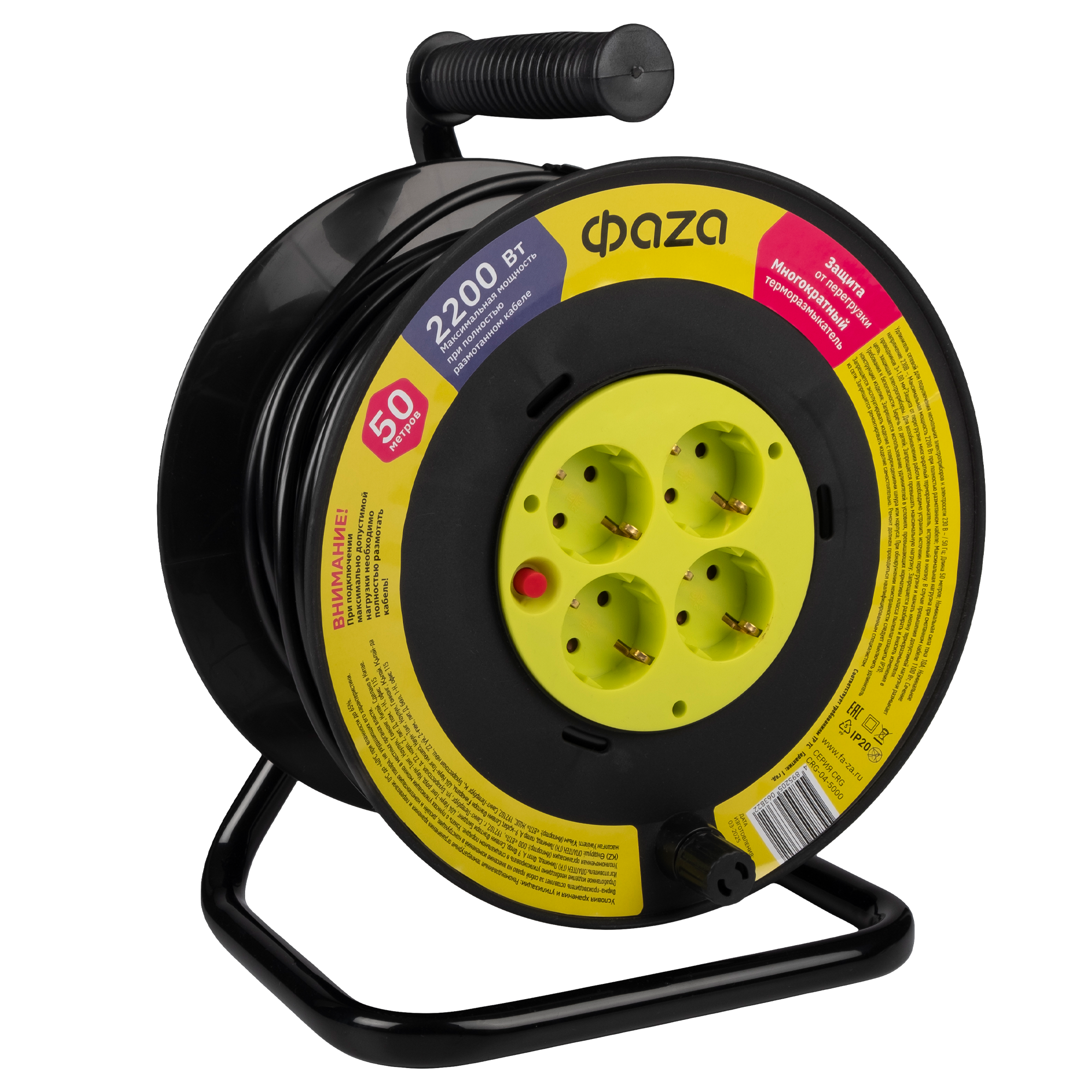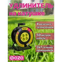 Удлинитель на катушке ФАZА с заземлением и термовыключателем 4 х 50м ПВС 3х1 мм2 2200Вт. .5063822: сравнение цен, характеристики, фото, актуальное наличие и цены.