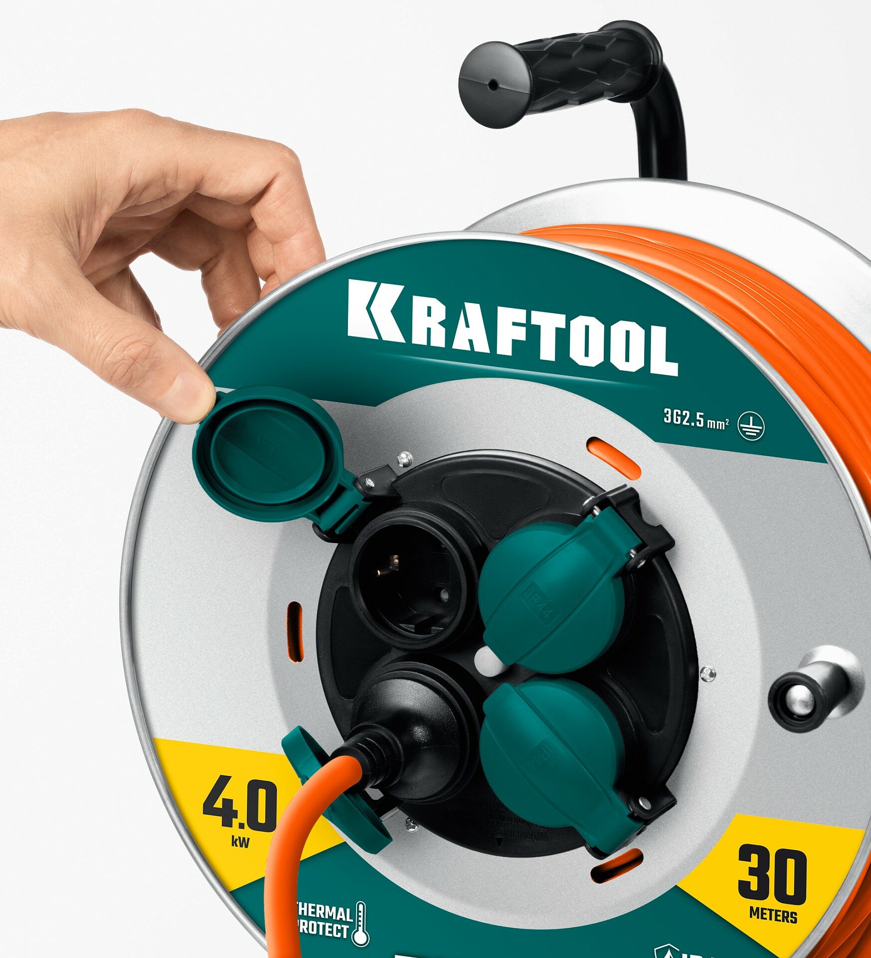 KRAFTOOL ПВС 3х2.5 30м 4000Вт IP44, Силовой удлинитель на стальной катушкеEXPERT (55089-30) (55089-30): сравнение цен, характеристики, фото, актуальное наличие и цены.