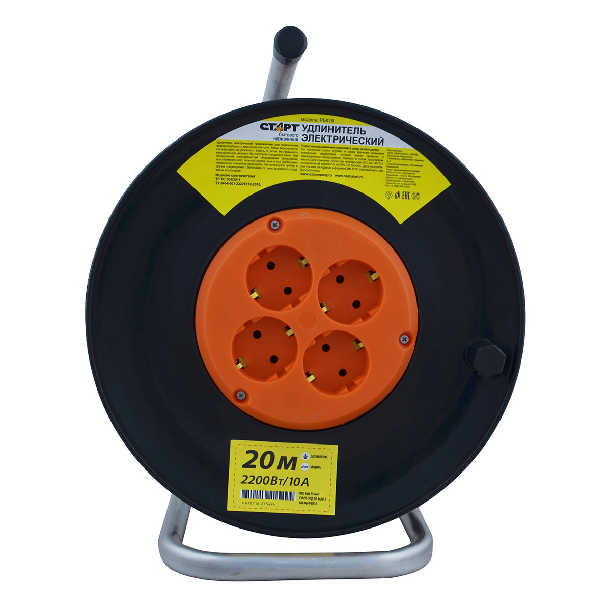 Удлинитель на катушке Старт SK 4х20-Z 10А Ор/РБК16, 4 розетки, с заземлением, 3 x 0,75 мм², 20 м: сравнение цен, характеристики, фото, актуальное наличие и цены.