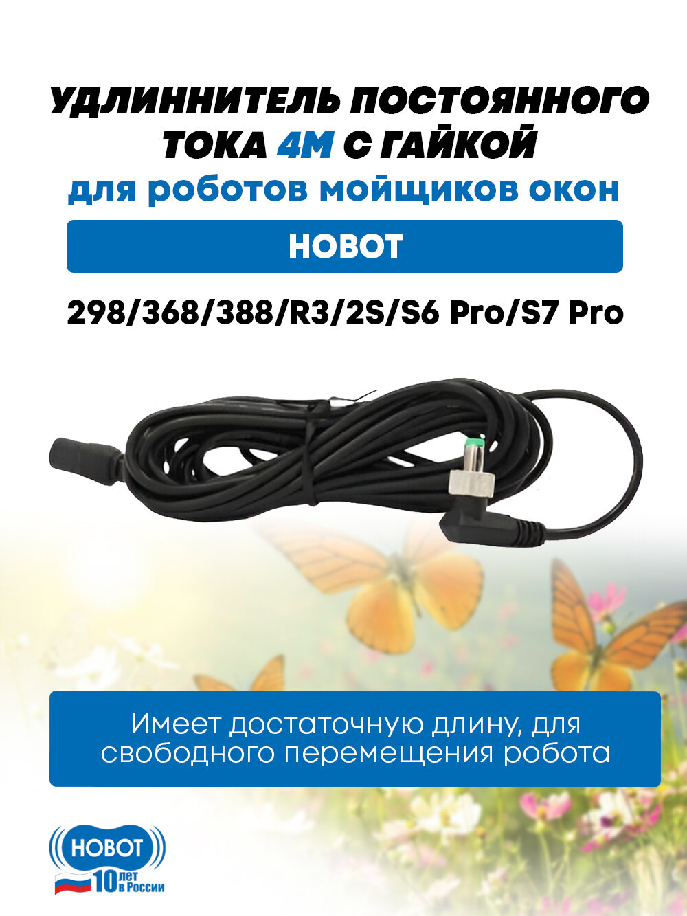 Купить Удлинитель постоянного тока 4 м c гайкой для робота-мойщика окон HOBOT 298 / 368 / 388 / 2S с доставкой по всей России.