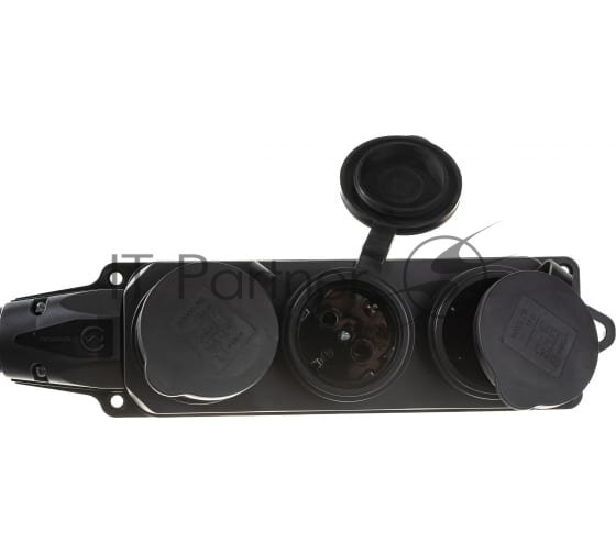 Удлинитель оснащен тремя розетками с заземлением, что обеспечивает безопасность использования и предотвращает риск поражения электрическим током.