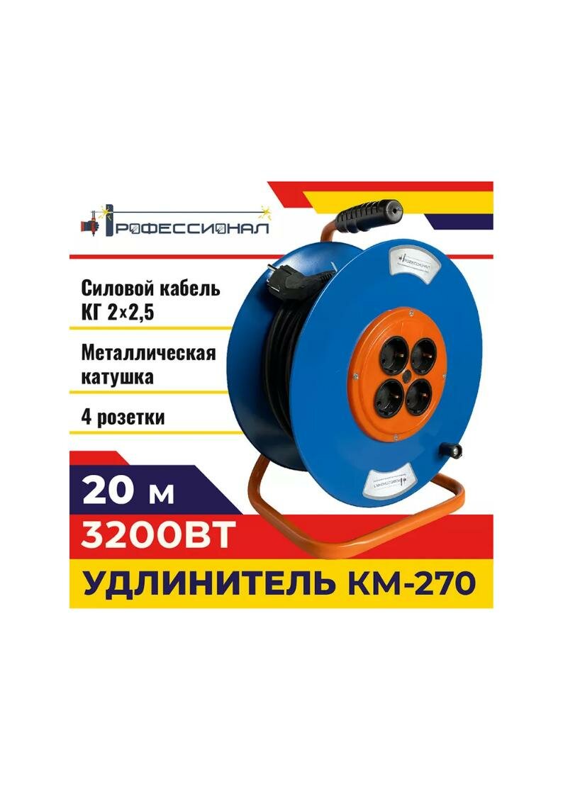 Удлинитель Профессионал КМ-270, 20 м, 4 розетки, металлический, черный: сравнение цен, характеристики, фото, актуальное наличие и цены.