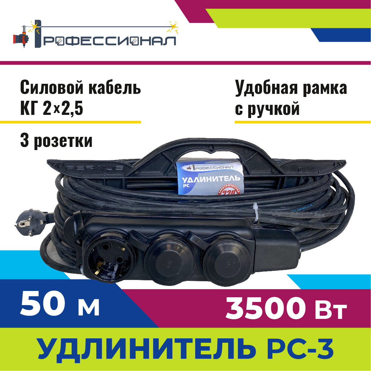 Удлинитель Профессионал РС-3, длина кабеля 50м, сечение провода 2×2,5 кв мм: сравнение цен, характеристики, фото, актуальное наличие и цены.