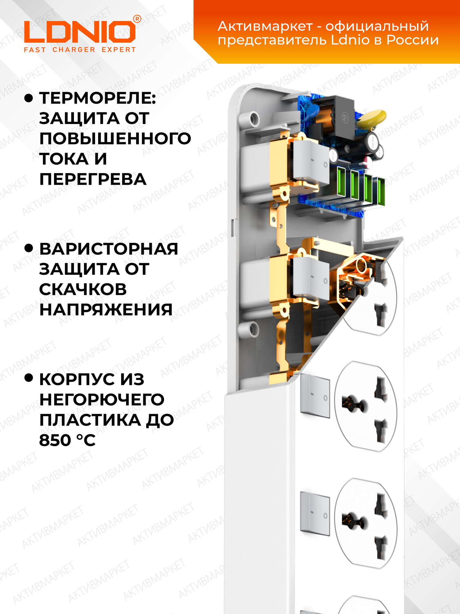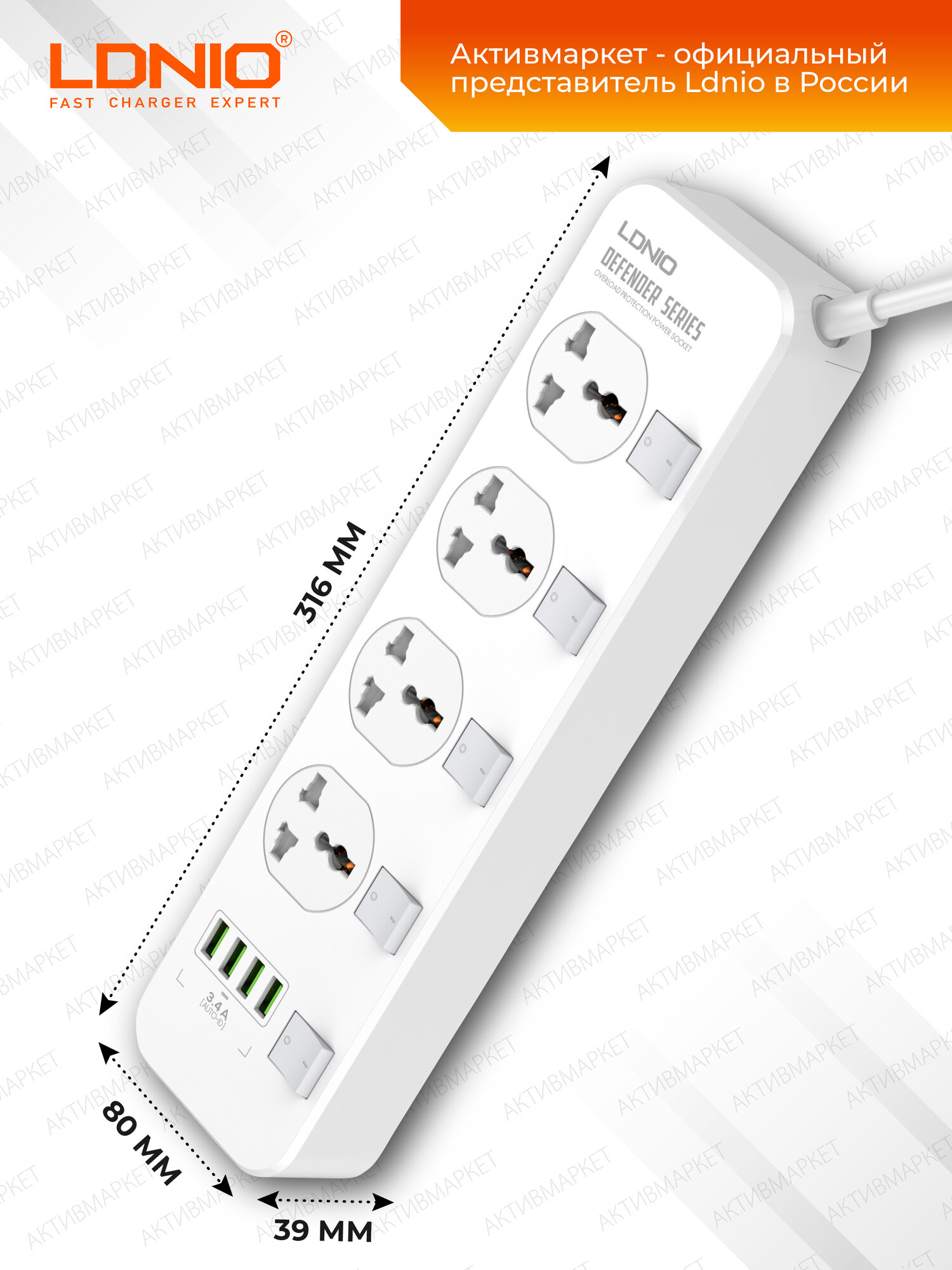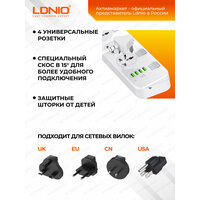Данное устройство защищает технику от разного рода помех, перегрузок, скачков напряжения. Оно имеет двухметровый кабель, обеспечивающий оптимальный приток электроэнергии к подключенной технике. На особой плате в корпусной части удлинителя располагаются защитные элементы. Для защиты от импульсных помех используются варисторы, подключаемые параллельно. При мощном импульсном перепаде варисторное сопротивление стремительно повышается, импульсная энергия превращается в тепловую. Если Вы купите сетевой фильтр LDNIO SC4408 4USB*4 розетки 2 м, то сможете подключать к нему сразу 4 прибора в розетки и еще 4 гаджета в USB порты. Телевизор, холодильник, компьютер, зарядник телефона, стиральная машина, электрочайник – все это прослужит вам долгое время, если электроэнергия будет поступать не от простого удлинителя, а от сетевого фильтра. Заказать сетевой фильтр LDNIO SC4408 4USB*4 розетки 2 м стоит еще и потому, что он обеспечивает оборудованию отличную защиту от пиковых нагрузок, скачков напряжения. Кроме того, он защищает технику от помех: электрической сети; высокой частоты; низкой частоты; импульсных. Это одно из ключевых преимуществ сетевого фильтра LDNIO SC4408 4USB*4 розетки 2 м. На каждой розетке есть специальная клавиша, предназначенная для включения и отключения электропитания. Включайте розетки только тогда, когда вам это нужно, чтобы экономить электричество и, следовательно, собственные деньги. К устройству можно подсоединять самое разное оборудование. Главное, чтобы штекер провода подключаемой бытовой/компьютерной техники был совместим с розетками стандарта Великобритании, Америки или Евросоюза.