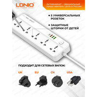 Купить Сетевой фильтр LDNIO SC5415, 5 universal port + 1C PD + 1USB QC3.0 + 2USB Auto ID, Кабель 2 м, Белый с доставкой по всей России.