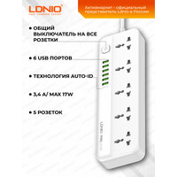 Купить Удлинитель сетевой фильтр LDNIO SC5614 2 метра, 2500 Вт, зарядка на 6 USB с доставкой по всей России. Удлинитель сетевой фильтр LDNIO SC5614 2 метра, 2500 Вт, зарядка на 6 USB: сравнение цен, характеристики, фото, актуальное наличие и цены.
