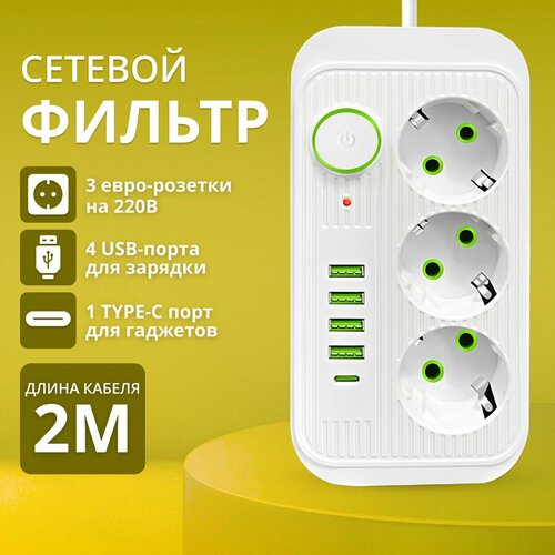 Купить Удлинитель сетевой фильтр с предохранителем 2500 Вт, с usb 2 метра 3 розетки 4 USB 1 Type-C, с единым выключателем с доставкой по всей России. Удлинитель сетевой фильтр с предохранителем 2500 Вт, с usb 2 метра 3 розетки 4 USB 1 Type-C, с единым выключателем: сравнение цен, характеристики, фото, актуальное наличие и цены.
