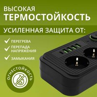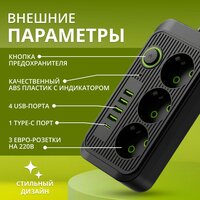 Купить Удлинитель сетевой фильтр с предохранителем 2500 Вт, с usb 3 метра 3 розетки 4 USB 1 Type-C, с единым выключателем с доставкой по всей России.