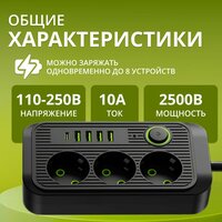 Удлинитель сетевой фильтр с предохранителем 2500 Вт, с usb 3 метра 3 розетки 4 USB 1 Type-C, с единым выключателем: сравнение цен, характеристики, фото, актуальное наличие и цены.