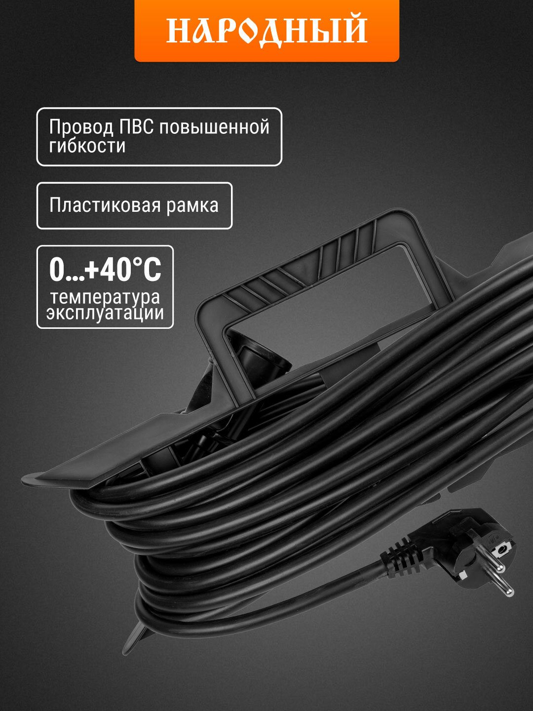 Удлинитель-шнур силовой на рамке, с заземлением, 40 метров, 1 розетка, ПВС 2200Вт, серия «народная» TDM Electric: сравнение цен, характеристики, фото, актуальное наличие и цены.