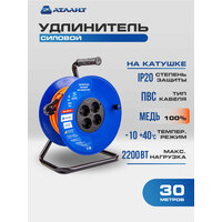 Удлинитель силовой 30 м АТЛАНТ ПВС 2х1 на катушке 4 розетки (б/з), уличный для электроинструмента, строительных работ: сравнение цен, характеристики, фото, актуальное наличие и цены.