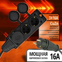 Удлинитель оснащен тремя розетками с заземлением, что гарантирует безопасное подключение электроприборов и снижает риск короткого замыкания. Степень защиты IP44 позволяет использовать удлинитель как внутри помещений, так и на открытых площадках, защищая его от попадания твердых частиц и брызг воды.