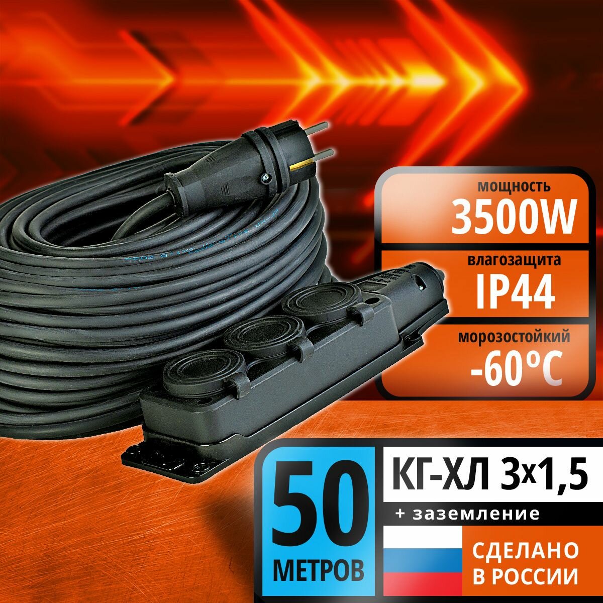Выберите удлинитель силовой без каркаса 50м КГ-ХЛ 3*1,5 3500 Вт 3гн. с заземлением IP44, чтобы обеспечить надежное электроснабжение в любых условиях и повысить эффективность своей работы.