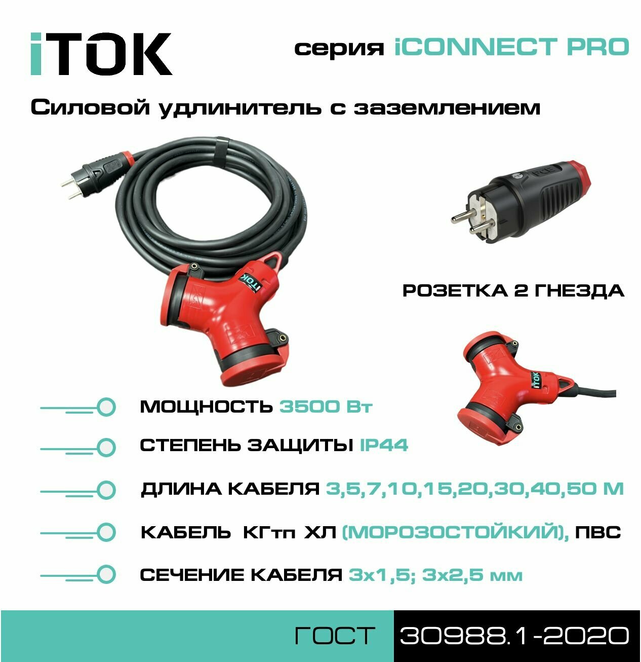 Удлинитель силовой уличный КГтп-ХЛ 3х2,5 мм 2 гнездa IP44 50 м с заземлением серии iCONNECT PRO iTOK: сравнение цен, характеристики, фото, актуальное наличие и цены.