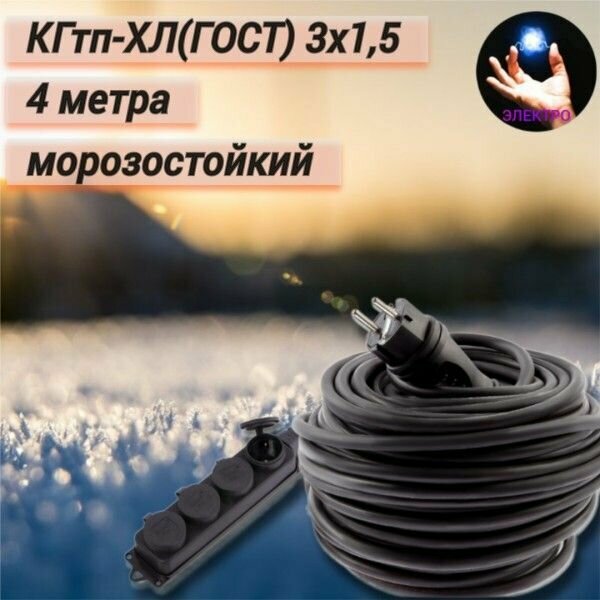 Удлинитель уличный всесезонный силовой в бухте КГтп-ХЛ (ГОСТ) 3*1,5 4 метра и четверной колодкой: сравнение цен, характеристики, фото, актуальное наличие и цены.