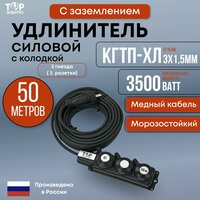 Удлинитель силовой морозостойкий ТОР 50 метров, на колодке 3 розетки с заземлением, Кгти-ХЛ 3х1.5 , 16А, IP44, 3500Вт: сравнение цен, характеристики, фото, актуальное наличие и цены.