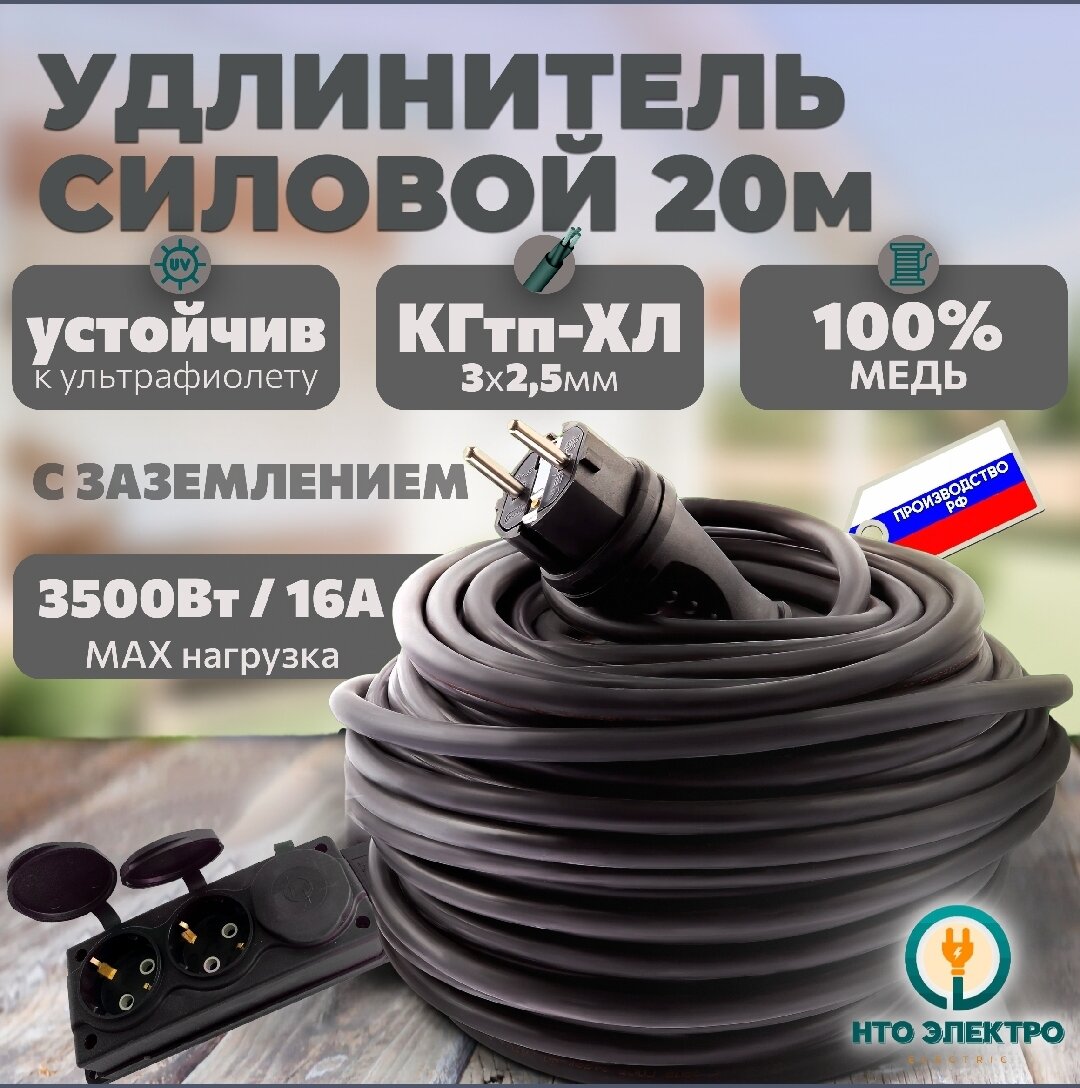 Удлинитель уличный силовой для сварки КГтп-Хл (ГОСТ) 3*2,5 20 метров и тройной колодкой: сравнение цен, характеристики, фото, актуальное наличие и цены.