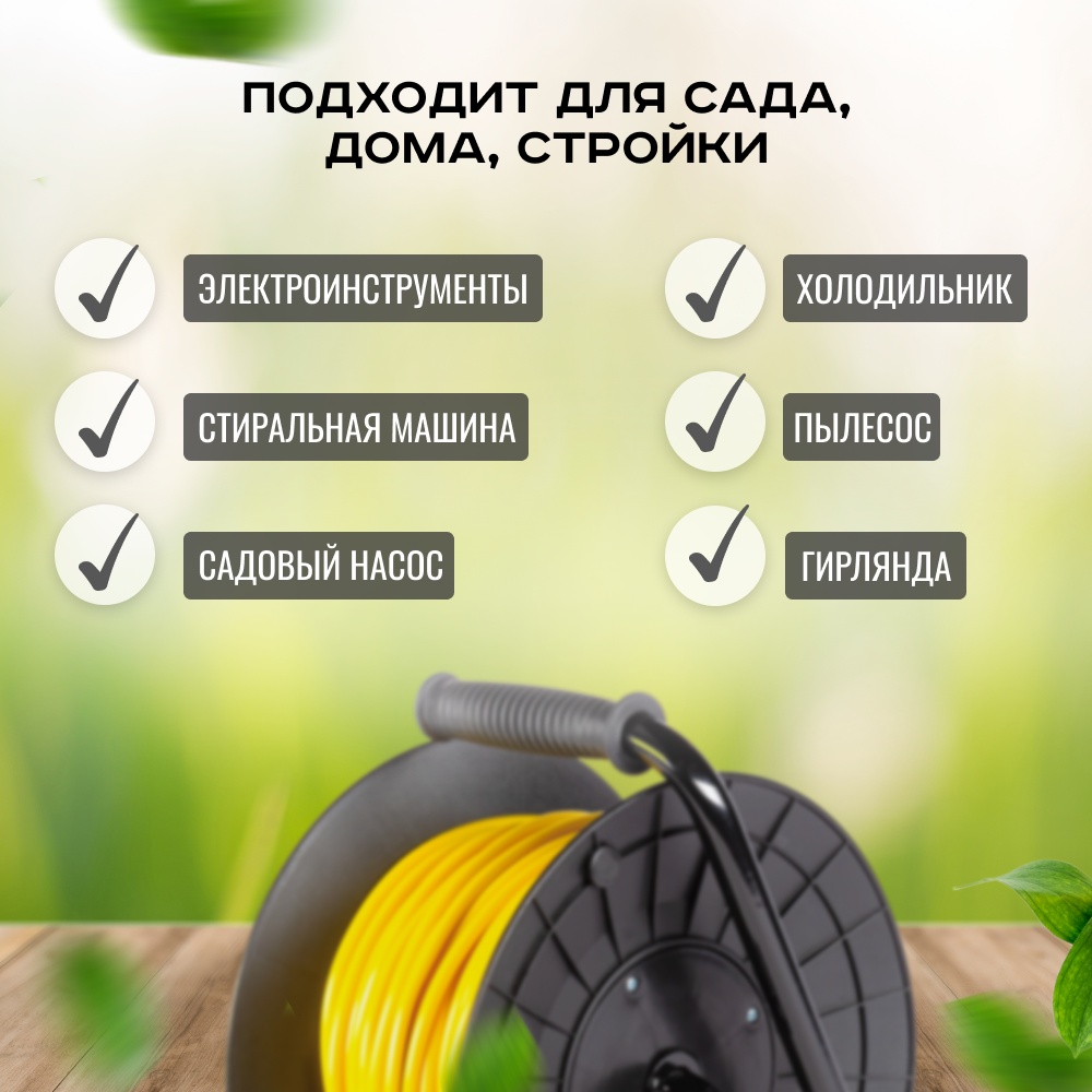 Силовой удлинитель обеспечивает стабильное и безопасное подключение электрических приборов, позволяя вам не беспокоиться о недостаточном расстоянии до источника питания. Его длина в 50 метров дает возможность свободно перемещаться по территории, не ограничивая ваши действия. Вы можете использовать его для подключения садового оборудования (триммер, газонокосилка), строительных инструментов или технике для активного отдыха.