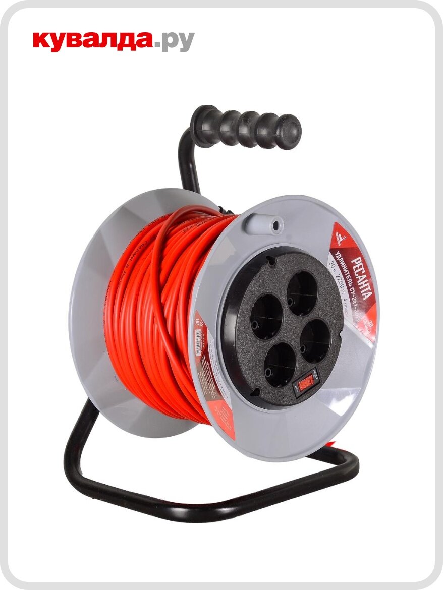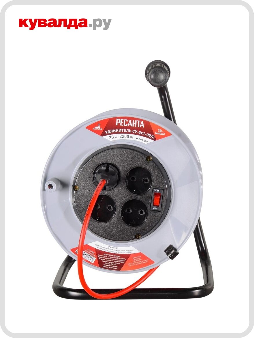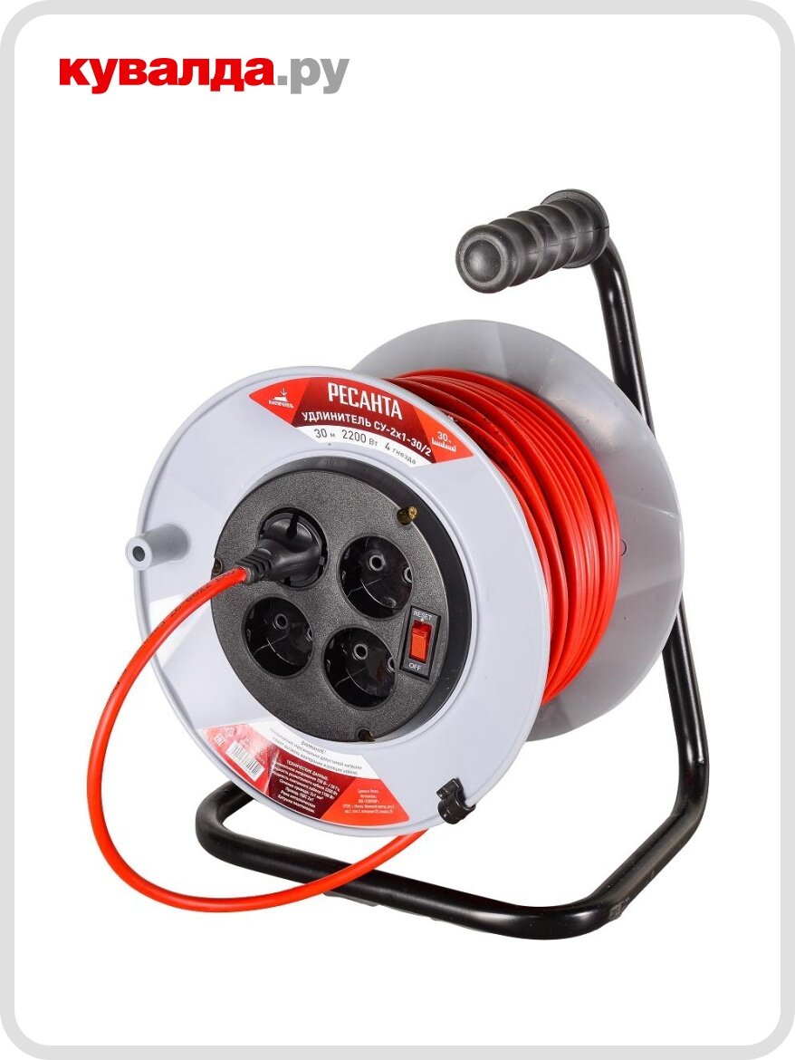 Силовой удлинитель Ресанта на катушке, СУ-2x1-30/2 (с выключателем, 4 розетки) 61/118/4 - Силовой удлинитель Ресанта СУ-2х1-30/2 пригодится на стройке, в частном доме и на дачном участке. Использовать его удобно за счет катушки, а переносить – благодаря эргономичной ручке и небольшому весу. Удлинитель поможет в использовании электрического триммера, газонокосилки. С его помощью легко подключить различного рода строительный инструмент.