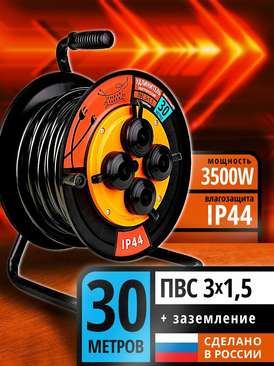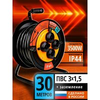 Купить Удлинитель силовой на катушке рыжая такса 30м 3500 Вт ПВС 3*1,5 с заземлением IP44 с доставкой по всей России.