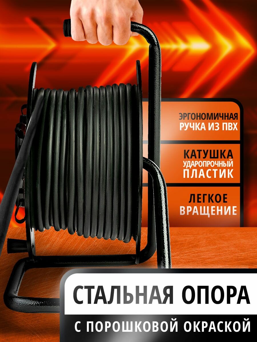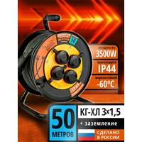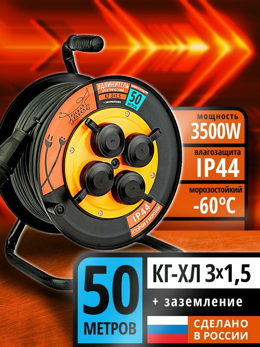 Купить Удлинитель силовой на катушке рыжая такса 50м 3500 Вт КГ-ХЛ 3*1,5 с заземлением IP44 с доставкой по всей России.