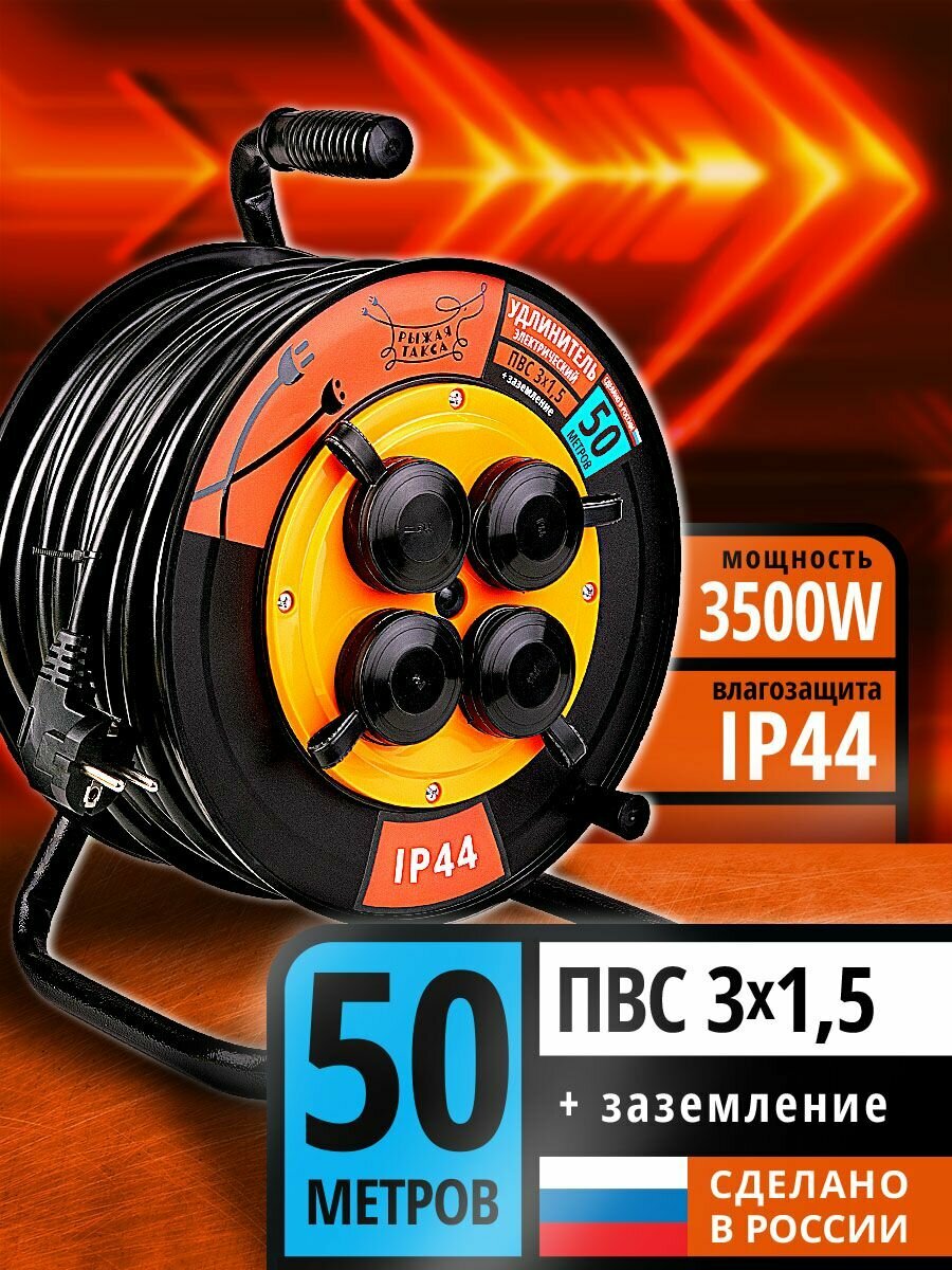 Удлинитель силовой на катушке рыжая такса 50м ПВС 3*1,5 3500 Вт с заземлением IP44: сравнение цен, характеристики, фото, актуальное наличие и цены.