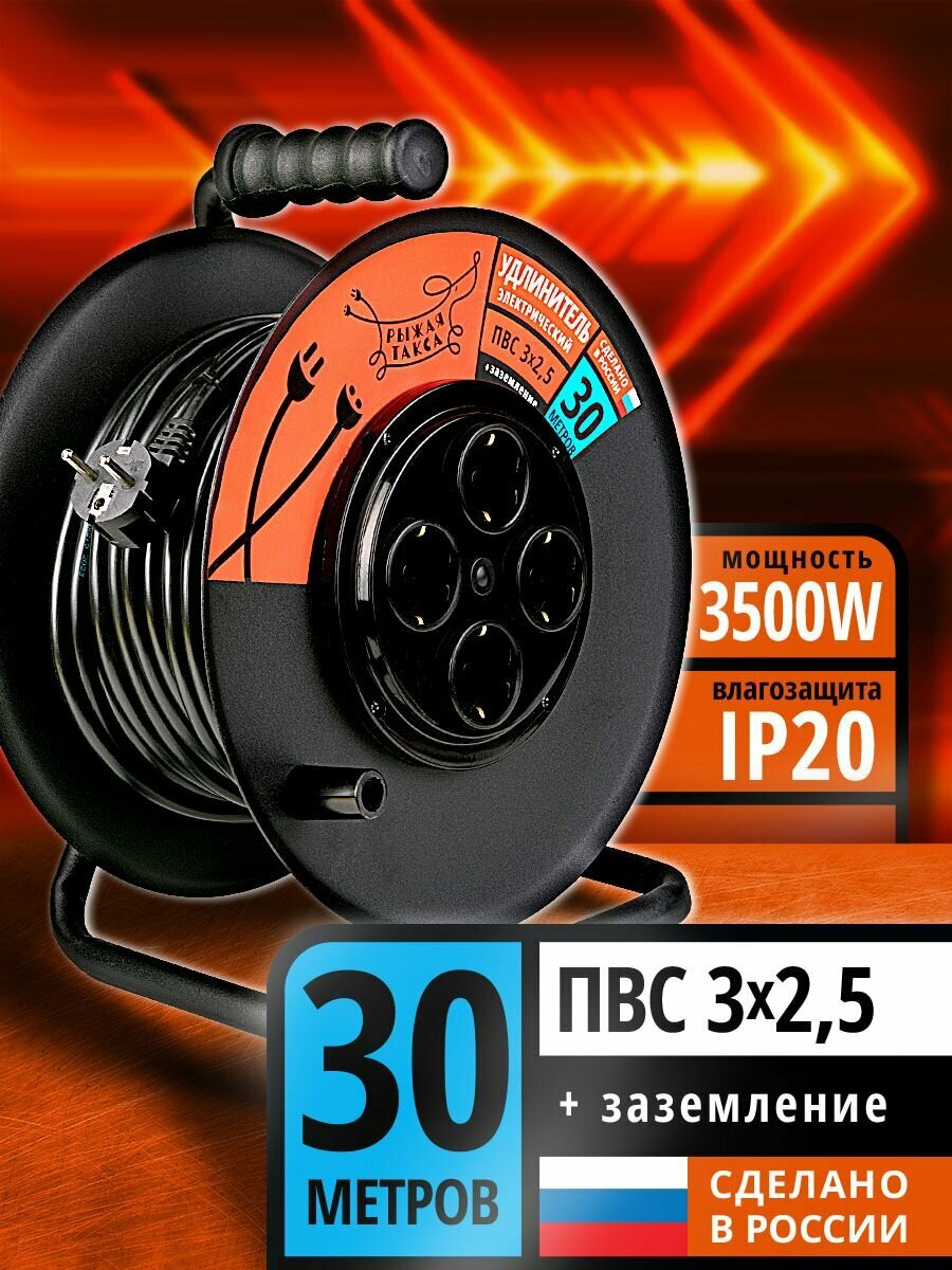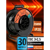 Купить Удлинитель силовой на металлической катушке рыжая такса 30м 3500 Вт ПВС 3*2,5 с заземлением с доставкой по всей России.