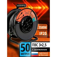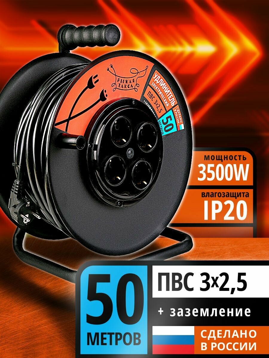 Купить Удлинитель силовой на металлической катушке рыжая такса 50м ПВС 3*2,5 3500 Вт с заземлением с доставкой по всей России.