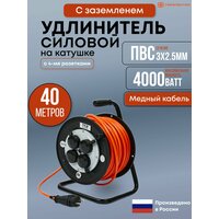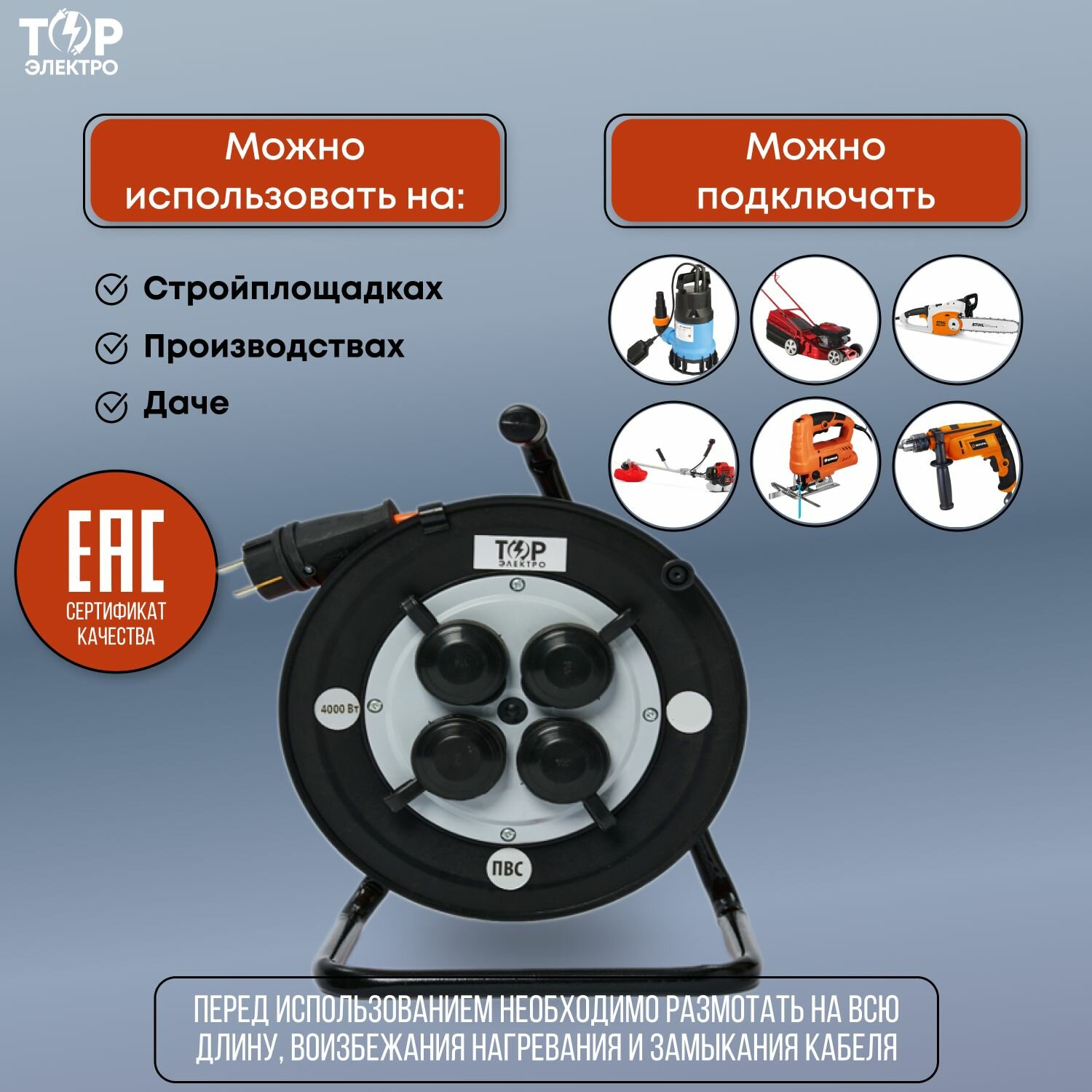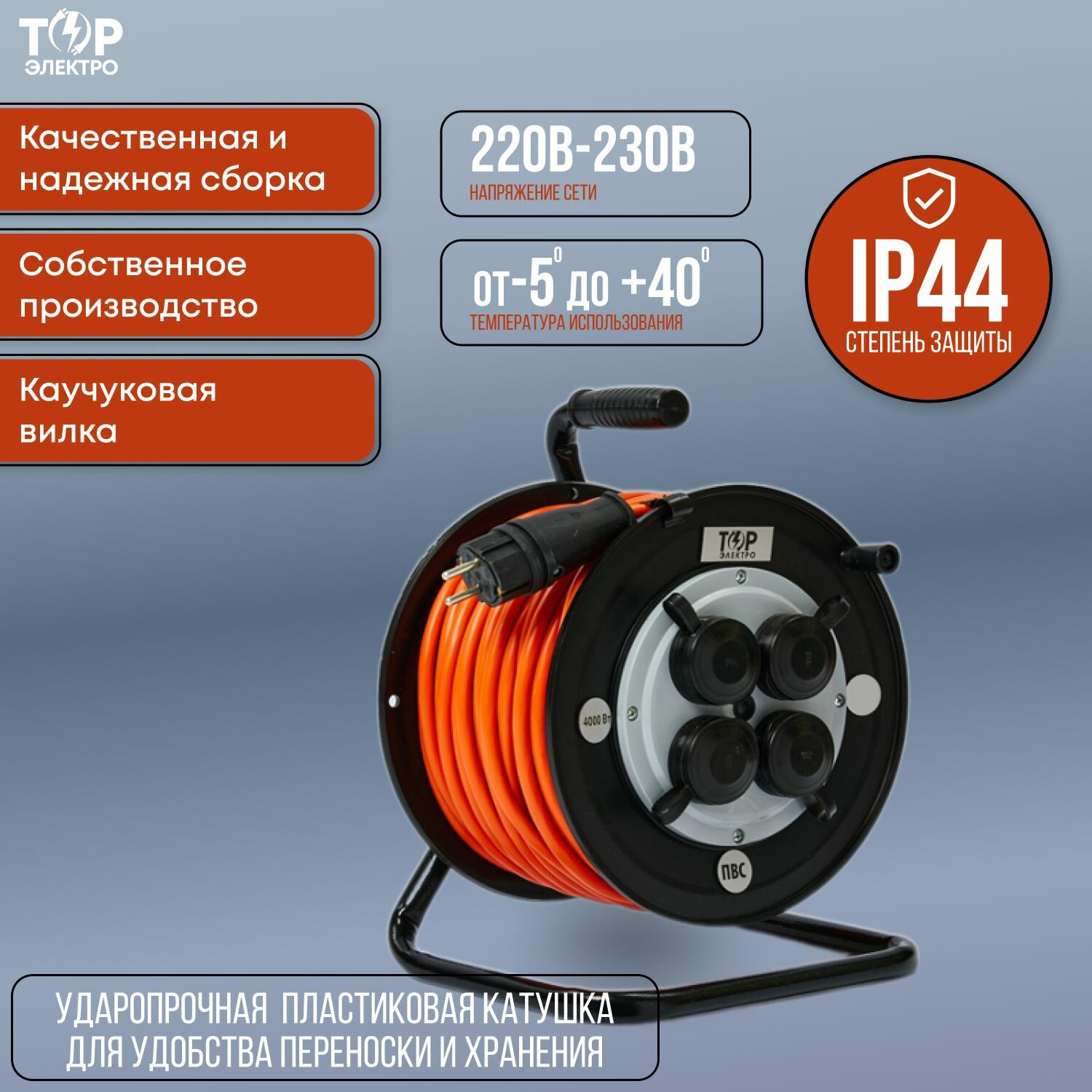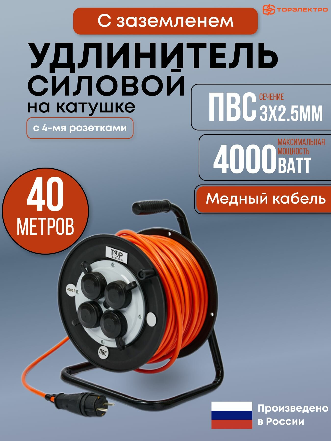 Удлинитель силовой на ударопрочной катушке ТОР, ПВС 4000 Вт, 40 метров, IP44 , с заземлением ПВС 3х2,5. 16А, 220В: сравнение цен, характеристики, фото, актуальное наличие и цены.