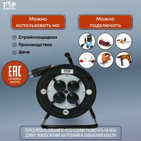 Купить Удлинитель силовой на ударопрочной катушке ТОР, ПВС 4000 Вт, 40 метров, IP44 , с заземлением ПВС 3х2,5. 16А, 220В с доставкой по всей России.