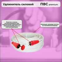 Удлинитель силовой «PREMIUM CABLE», электрический 3 м с заземлением, каучук, ПВС 3х2,5 ГОСТ: сравнение цен, характеристики, фото, актуальное наличие и цены.