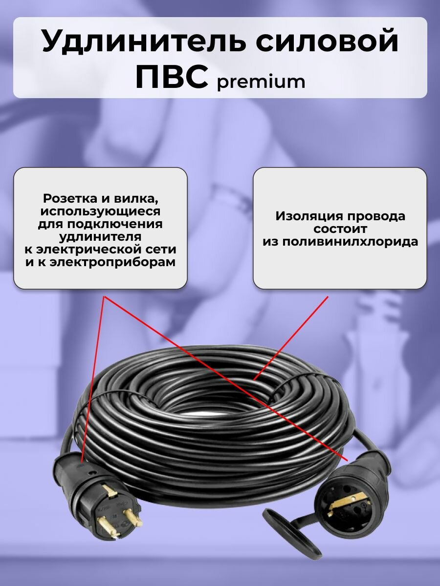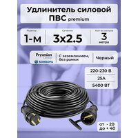 Удлинитель силовой «PREMIUM CABLE», электрический 3 м с заземлением, кабель ПВС 3х2,5 черный: сравнение цен, характеристики, фото, актуальное наличие и цены.