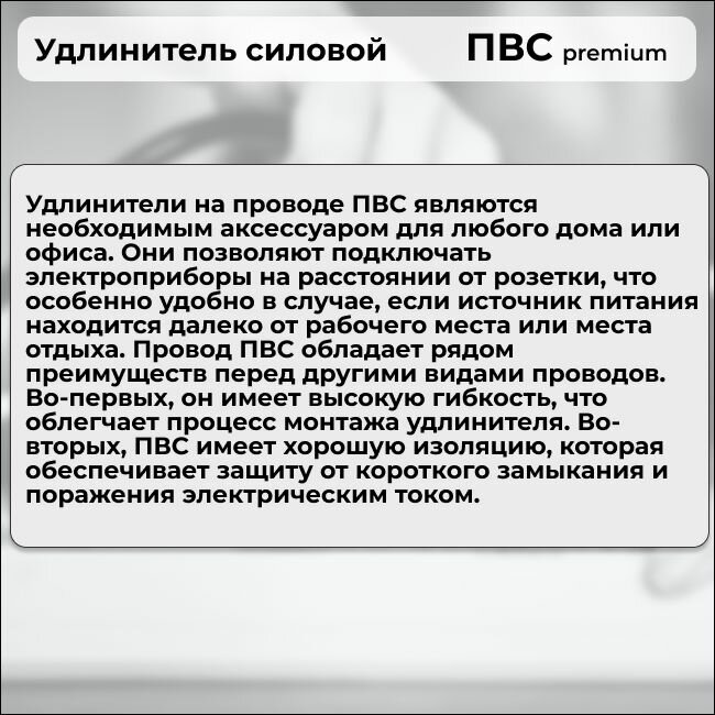 Удлинитель силовой «PREMIUM CABLE», электрический 4 м кабель ПВС 2х1 черный ГОСТ: сравнение цен, характеристики, фото, актуальное наличие и цены.