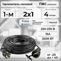 Купить Удлинитель силовой «PREMIUM CABLE», электрический 4 м кабель ПВС 2х1 черный ГОСТ с доставкой по всей России.