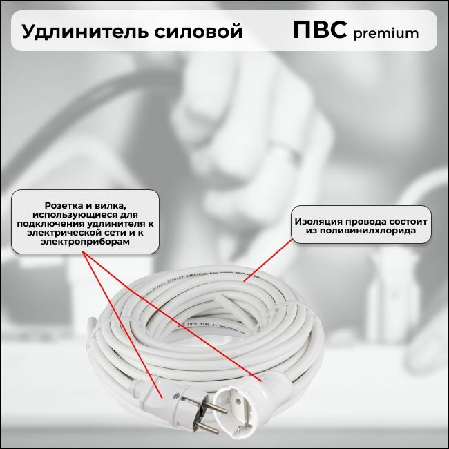 Купить Удлинитель силовой «PREMIUM CABLE» кабель ПВС 2х2,5 белый, 3 м для электроприборов в бухте с доставкой по всей России.