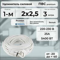 Удлинитель силовой «PREMIUM CABLE» кабель ПВС 2х2,5 белый, 3 м для электроприборов в бухте: сравнение цен, характеристики, фото, актуальное наличие и цены.