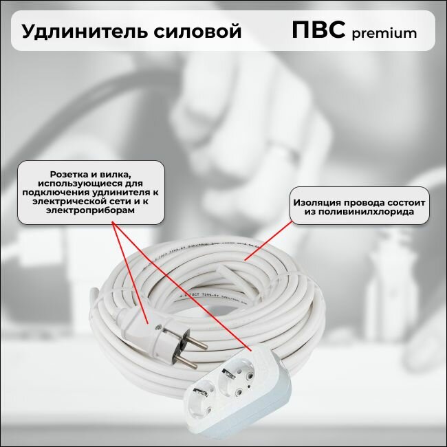 Удлинитель силовой «PREMIUM CABLE» кабель ПВС 2х2,5 белый, с 2 розетками, 4 м для электроприборов в бухте: сравнение цен, характеристики, фото, актуальное наличие и цены.