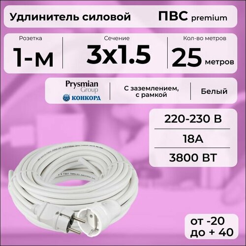 Удлинитель силовой «PREMIUM CABLE» кабель ПВС 3х1,5 белый, на рамке, электрический 25 м с заземлением: сравнение цен, характеристики, фото, актуальное наличие и цены.