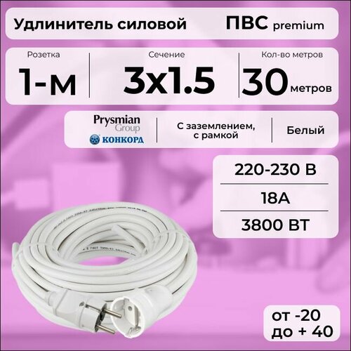 Удлинитель силовой «PREMIUM CABLE» кабель ПВС 3х1,5 белый, на рамке, электрический 30 м с заземлением: сравнение цен, характеристики, фото, актуальное наличие и цены.