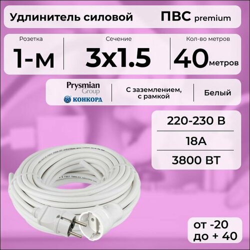 Удлинитель силовой «PREMIUM CABLE» кабель ПВС 3х1,5 белый, на рамке, электрический 40 м с заземлением: сравнение цен, характеристики, фото, актуальное наличие и цены.