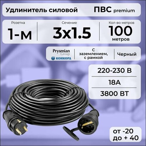 Удлинитель силовой «PREMIUM CABLE» кабель ПВС 3х1,5 черный, на рамке, электрический 100 м с заземлением: сравнение цен, характеристики, фото, актуальное наличие и цены.