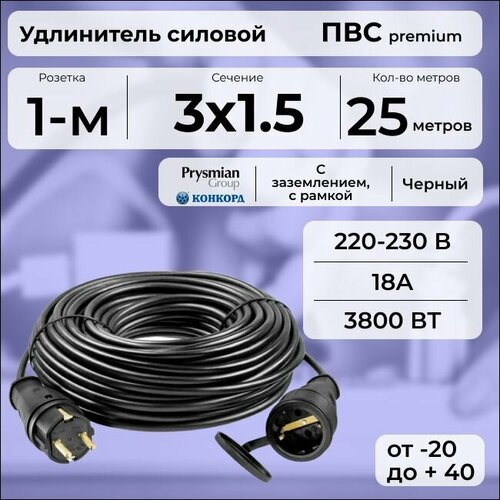 Удлинитель силовой «PREMIUM CABLE» кабель ПВС 3х1,5 черный, на рамке, электрический 25 м с заземлением: сравнение цен, характеристики, фото, актуальное наличие и цены.