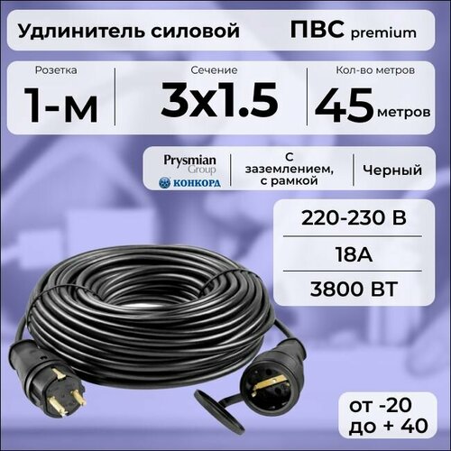 Удлинитель силовой «PREMIUM CABLE» кабель ПВС 3х1,5 черный, на рамке, электрический 45 м с заземлением: сравнение цен, характеристики, фото, актуальное наличие и цены.