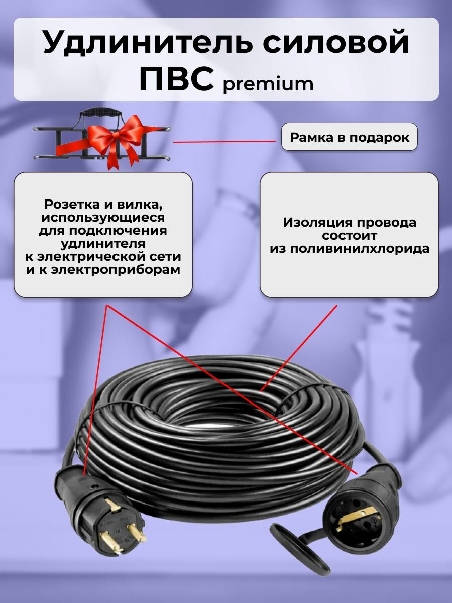 Удлинитель силовой «PREMIUM CABLE» на рамке, электрический 10 м с заземлением, кабель ПВС 3х2,5 черный: сравнение цен, характеристики, фото, актуальное наличие и цены.